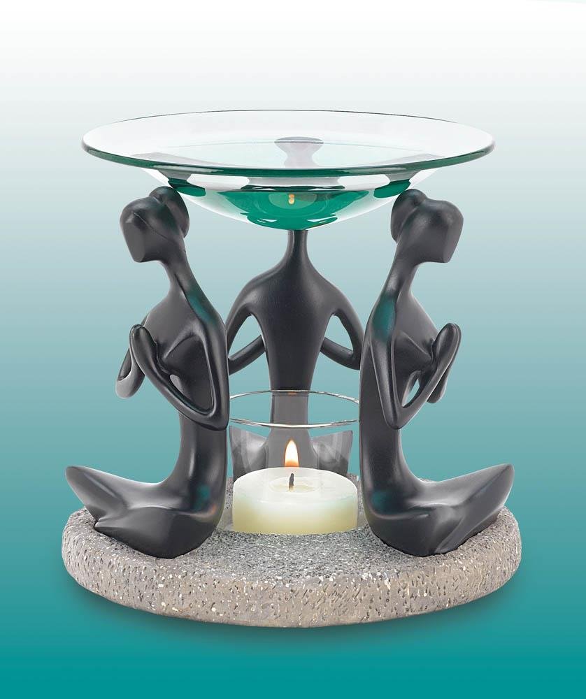 A trio of women bow their heads in reverent reflection, offering up a heartfelt prayer of gratitude and joy. From within the heart of their circle, a glowing votive gently warms a pool of aromatic oil on the transparent plate above. An elegant decoration that inspires a feeling of serenity! Weight1.5 pounds. 5.25" x 5.25" x 4.75". Polyresin, Glass. UPC Number:849179004019.