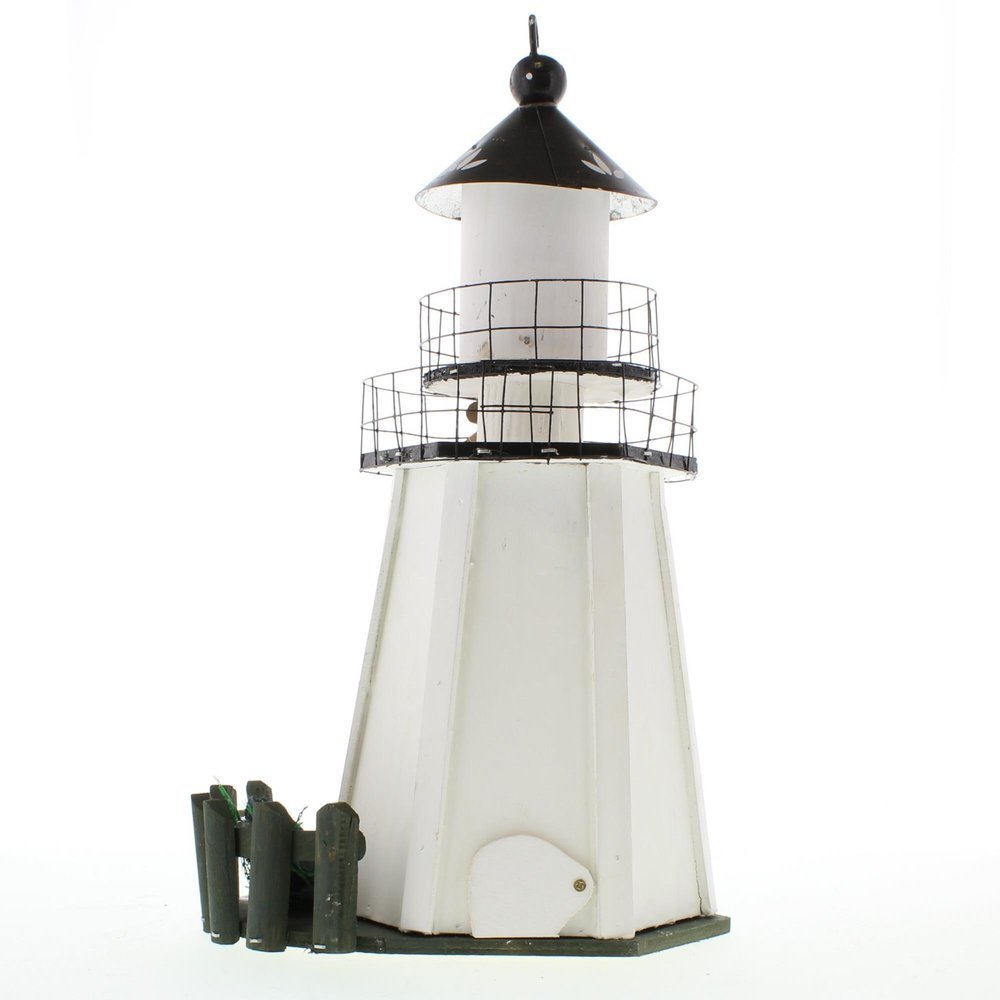 Wooden light house bird house featuring a two-tiered walk and authentic nautical accents. Birds love this Pennsylvania Dutch-style haven! Weight1.2 pounds. 7.25" x 5.25" x 12.2". Wood, Eucalyptus Wood, Metal. UPC: 849179014629.